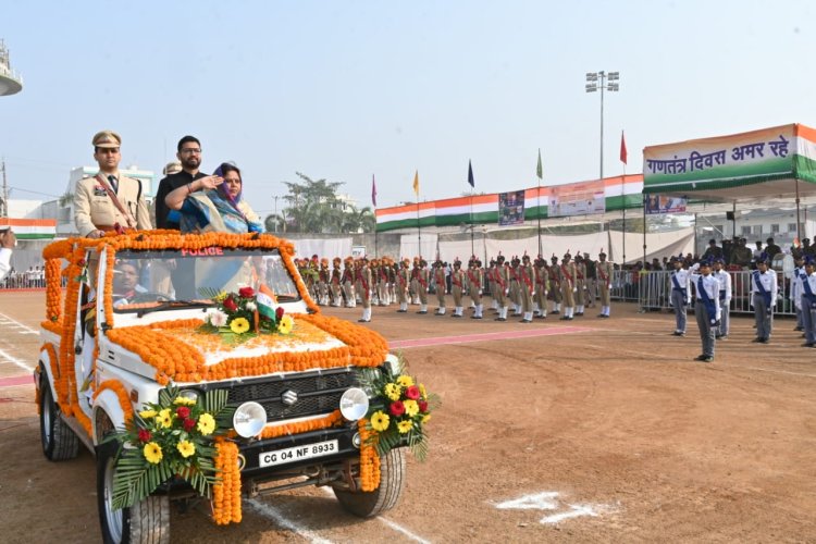 इसके पश्चात प्लाटून 20वीं वाहिनी छ.ग. सशस्त्र पुलिस बल, जिला पुलिस बल, नगर सेना महिला प्लाटून, सीनियर डिवीजन एन.सी.सी., एन.एस.एस महाविद्यालय, जूनियर डिवीजन एन.सी.सी., गाईड, स्काउट, एन.एस.एस विद्यालय एवं रेडक्रॉस के टुकड़ियों द्वारा अनुशासित मार्च पास्ट एवं सलामी दी गई। इस दौरान कार्यक्रम स्थल देशभक्ति के वातावरण से ओत-प्रोत हो गया।