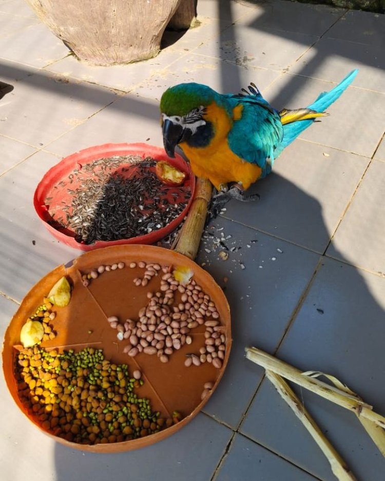 ब्लू गोल्ड मकाऊ और अफ्रीकन ग्रे पैरेट के आगमन से गुलजार हुआ परिसर