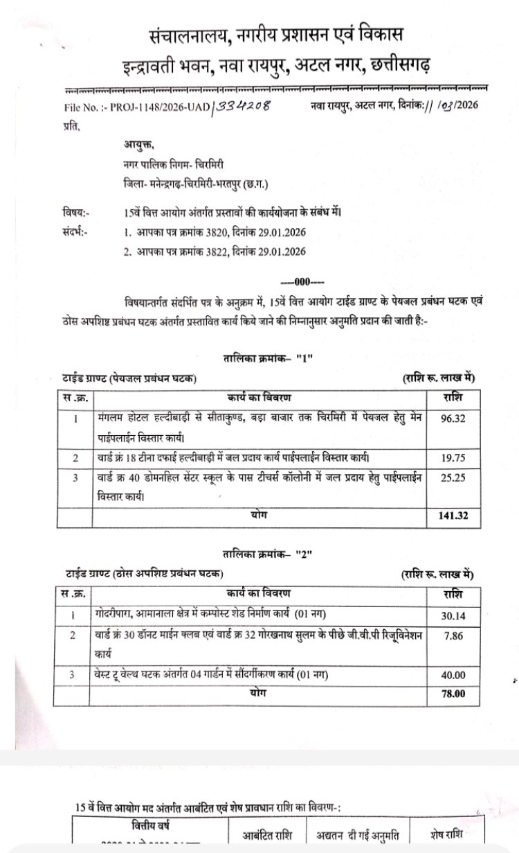 मामले की गंभीरता को देखते हुए क्षेत्रीय विधायक व स्वास्थ मंत्री श्याम बिहारी जायसवाल ने तत्काल पत्र को चिरमिरी के महापौर राम नरेश राय को अग्रेषित करते हुए प्रस्ताव बनाकर भेजने को कहा । महापौर द्वारा प्रस्ताव नगरीय निकाय विभाग को भेजने के बाद इसे इस बजट सत्र में प्रशासकीय स्वीकृति मिल गई है ।
