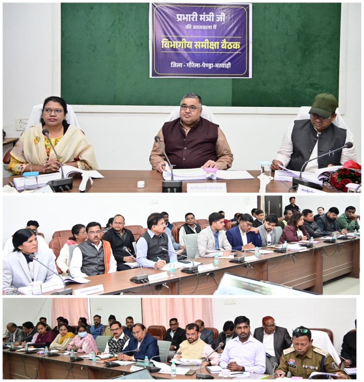 गौरेला पेन्ड्रा मरवाही जिले के प्रभारी एवं पर्यटन, संस्कृति, धार्मिक न्यास और धर्मस्व मंत्री श्री राजेश अग्रवाल ने आज कलेक्ट्रेट के अरपा सभा कक्ष में जिला अधिकारियों की विभागवार समीक्षा बैठक की। बैठक में विधायक श्री प्रणव कुमार मरपच्ची, जिला पंचायत अध्यक्ष सुश्री समीरा पैकरा, कलेक्टर श्रीमती लीना कमलेश मंडावी, पुलिस अधीक्षक श्री एस आर भगत सहित सभी विभागों के अधिकारी उपस्थित थे। मंत्री श्री अग्रवाल ने जिले में चल रही विभिन्न योजनाओं के क्रियान्वयन की प्रगति, लक्ष्य और उपलब्धियों पर गहराई से चर्चा की।