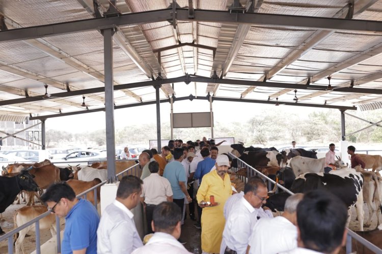 उद्घाटन के पश्चात नव-निर्मित शेड में 51 गौमाताओं का मंगल प्रवेश “गौ माता की जय” के जयघोष और पुष्पवर्षा के बीच कराया गया. उपस्थित सभी सदस्यों ने चंदन, अक्षत, पुष्पमाला और आरती के माध्यम से गौमाताओं का पूजन किया और हरा चारा, गुड़ और अपने-अपने घरों से लायी गई रोटियां खिलाकर सेवा भाव व्यक्त किया.
