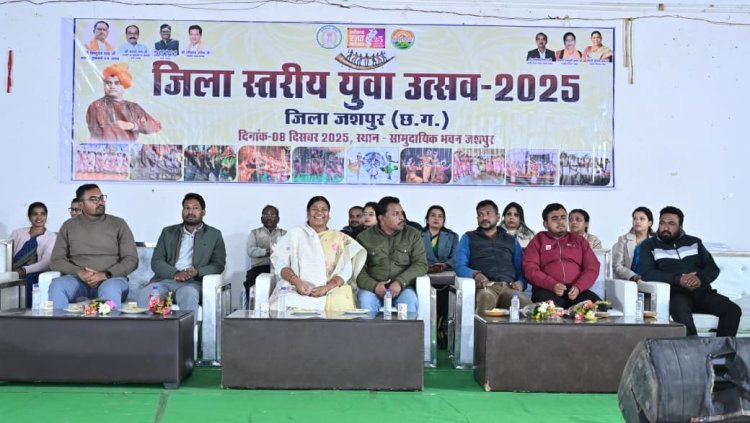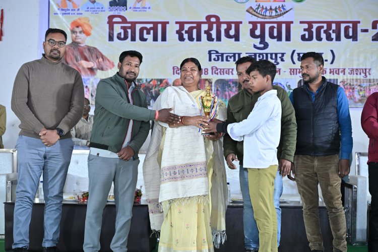 जशपुरनगर, 09 दिसंबर 2025/ जिले में सोमवार को सामुदायिक भवन जशपुर में जिला स्तरीय युवा उत्सव 2025 धूमधाम से संपन्न हुआ। इस आयोजन में लगभग 400 युवाओं ने उत्साह और ऊर्जा के साथ भाग लेकर कार्यक्रम को यादगार बना दिया। युवा उत्सव के दौरान विविध सांस्कृतिक प्रस्तुतियों ने सभी को मंत्रमुग्ध किया, वहीं भाषण, चित्रकला एवं अन्य प्रतियोगिताओं में युवाओं ने अपनी प्रतिभा से सबको आश्चर्यचकित किया। समापन समारोह में मुख्य अतिथि विधायक श्रीमती रायमुनी भगत सहित अन्य अतिथियों ने विजेताओं को शुभकामनाएं दीं और प्रतिभागियों का उत्साहवर्धन किया। विभिन्न स्पर्धाओं के विजेताओं को प्रमाणपत्र एवं पुरस्कार प्रदान किए गए।
