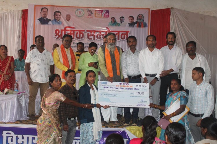 छत्तीसगढ़ शासन श्रम विभाग के निर्देशानुसार श्रमिक सम्मेलन-2026 का आयोजन उत्तर बस्तर कांकेर जिले के सामुदायिक भवन अंतागढ़ में किया गया। इस अवसर पर मुख्य अतिथि के रूप में लोकसभा क्षेत्र कांकेर के सांसद श्री भोजराज नाग उपस्थित थे तथा कार्यक्रम की अध्यक्षता नगर पंचायत अंतागढ़ के अध्यक्ष श्री राधेलाल नाग द्वारा की गई। कार्यक्रम में छत्तीसगढ़ भवन एवं अन्य सन्निर्माण कर्मकार कल्याण मंडल एवं छत्तीसगढ़ असंगठित कर्मकार राज्य सामाजिक सुरक्षा मंडल के अन्तर्गत विभिन्न जन कल्याणकारी योजनाओं से जिले के श्रमिक व उनके परिवार के सदस्यों को डायरेक्ट बेनिफिट ट्रांसफर (डी.बी.टी.) के माध्यम से राशि हस्तांतरित कर लाभान्वित किया गया।